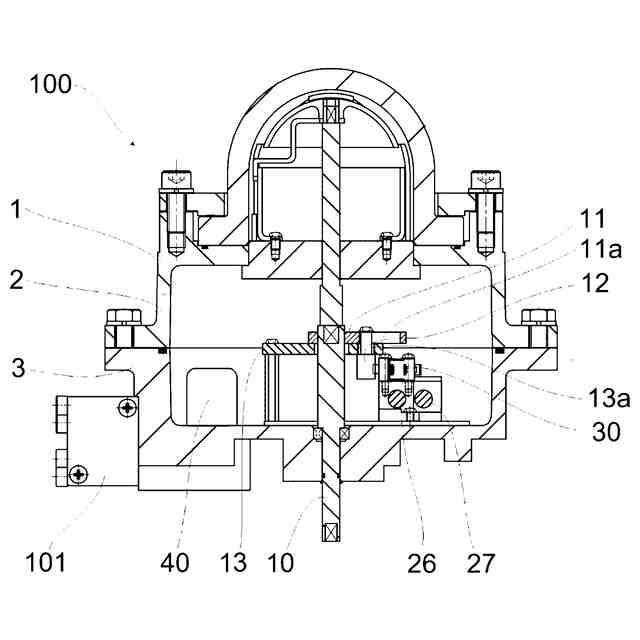 前記筐体は、当該筐体の内部と外部とを連通する回転軸をさらに備え、
