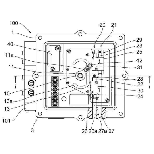 しかしながら、特許文献1では、リミットスイッチの位置を調整する際に、流量調整弁を動かすモータのカバーを取り外す必要があった。そのため、従来の排気装置を可燃性物質と支燃性物質とにより生成された爆発性ガス蒸気雰囲気の中に設置した場合には、カバーを取り外すことで、着火の原因となる電気花火や電気機器の故障などによる過熱で高温となる部分(着火源)が爆発性ガス蒸気雰囲気に晒されることになるため、火災や爆発の発生を防ぐために、筐体のカバーを取り外して筐体におけるリミットスイッチ等のセンサの設置位置を調整することができないという問題点があった。