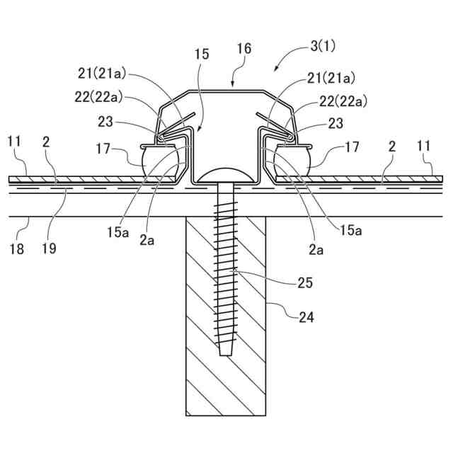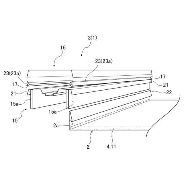 金属屋根3は、隣接する金属仕上材2の間に設けられた継部材15に、上からカバー部16が取付けられ、