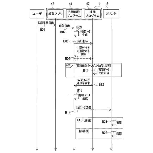 本明細書に開示される技術によれば、OS標準の汎用印刷プログラムからプリンタに蓄積印刷を行わせる場合に、蓄積印刷の利便性を向上させる技術が実現される。