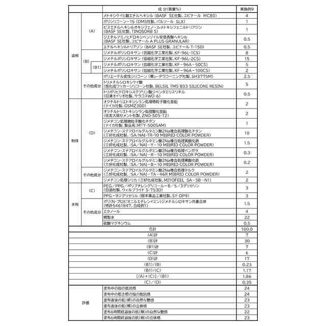 成分(A)は、1種又は2種以上を組合わせて用いることができ、含有量は、紫外線を吸収し、肌を保護する観点から、全組成中に1質量%以上であるのが好ましく、2質量%以上がより好ましく、3質量%以上がさらに好ましく、20質量%以下が好ましく、12質量%以下がより好ましく、9質量%以下がさらに好ましい。また、成分(A)の含有量は、全組成中に1~20質量%であるのが好ましく、2~12質量%がより好ましく、3~9質量%がさらに好ましい。