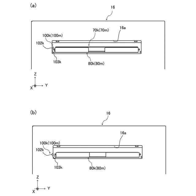 実施例1に係る画像形成装置の断面図(a、b)。