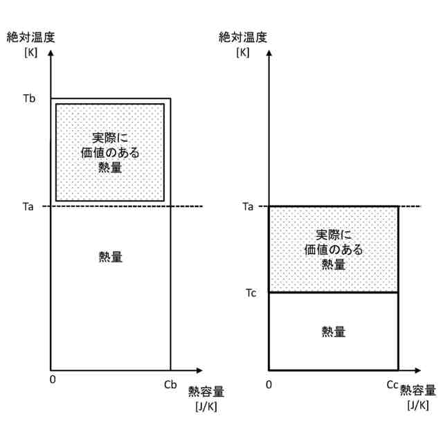 温熱および冷熱における価値のある熱量を示すグラフである。