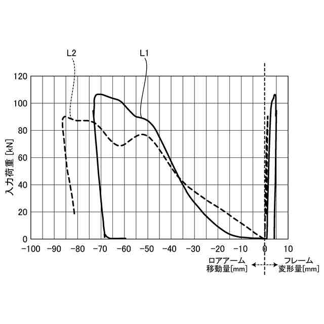図6は、ロアアームの移動量とフレームの変形量とを表す図である。