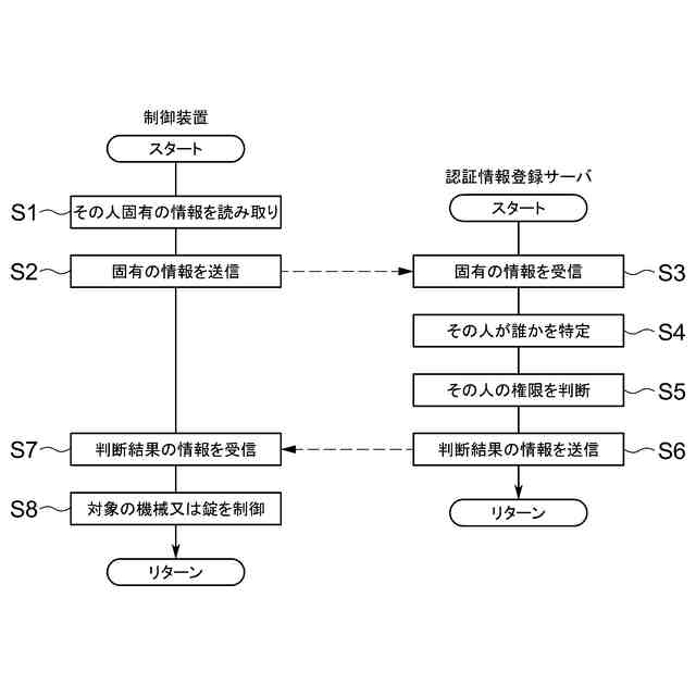 認証処理の機能を実現するためには、複数台設置された機械のそれぞれの制御装置に、又は複数の部屋のそれぞれの施解錠の制御装置に、手入力されるID及びパスワードの組やIDカード内の情報と照合するべき認証情報(いわゆるパスワードファイル)を予め登録しておく必要がある。だが、複数台の機械、又は複数の部屋の各々に、逐一認証情報を登録する手間は実際に面倒である。