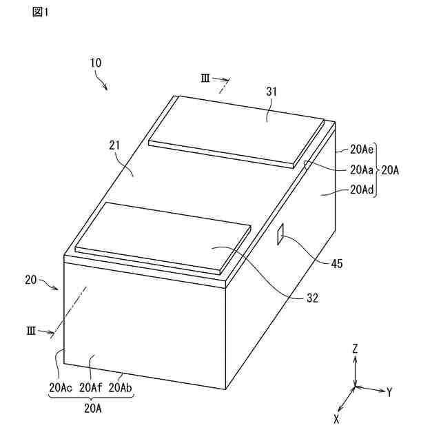 前記本体の外面のうちの前記軸方向に交差する交差面に設けられた第1外部端子と、