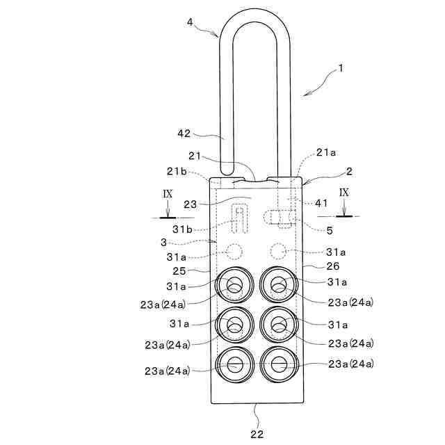従って、本発明は、シャックルの先端部が挿通孔に対向している位置のみにおいて、シャックルをケースに対しスライド板と共に閉位置へ押し下げできるようにして、閉位置でのパドロックの掛け止めを不能とする多重ロック装置を提供することを課題とする。