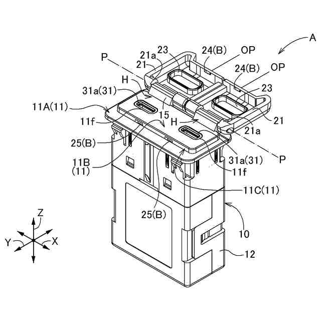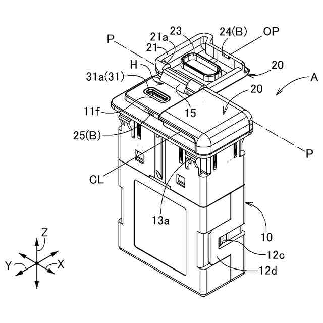 【解決手段】コネクタ1に挿入されるプラグが挿通する挿通孔11fが形成された筐体10と、筐体10に支持され開閉軸心Pを中心に挿通孔11fを覆う閉じ姿勢および挿通孔11fを開放する開放姿勢に切換可能な蓋体20と、を備えている。筐体10は、端部に端部壁11を有し、端部壁11は、本体壁部11Aと、本体壁部11Aの外縁より内側に配置され、本体壁部11Aから筐体10の外方に突出した突出壁部11Bを有し、突出壁部11Bは挿通孔11fを有し、端部壁11は、突出壁部11Bと本体壁部11Aとの境界を含む段差部11Cを有している。