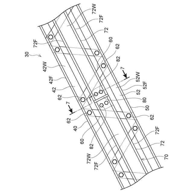 前記補強部材の長手方向に隣り合う前記分割補強部材は、つづり板を介してボルト接合される、