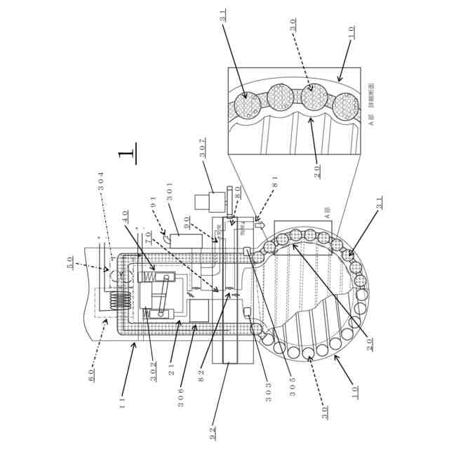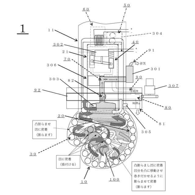 【解決手段】 外側ボール部材10と、外側ボール部材10の内部空間へ配置された内側ボール部材20と、内側ボール部材20の内部空間に対してエア吸引およびエア吐出を行うポンプ装置40と、を備えており、外側ボール部材10は、内部空間とともに筒状に突出する外側ボール突出部11を有し、内側ボール部材20は、内部空間とともに筒状に突出する内側ボール突出部21を有し、内側ボール突出部21は、外側ボール突出部11の内部空間へ配置されており、内側ボール突出部21の内部空間は、外側ボール突出部11を貫通して外部空間と連通されており、把持対象物100が外側ボール部材10の外表面で把持されるとき、ポンプ装置40はエア吸引を行うエンドエフェクター1である。