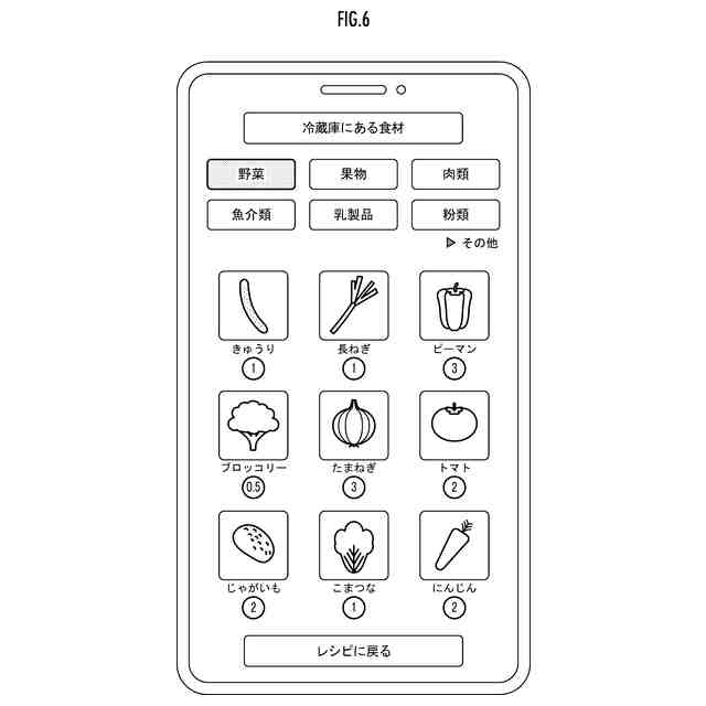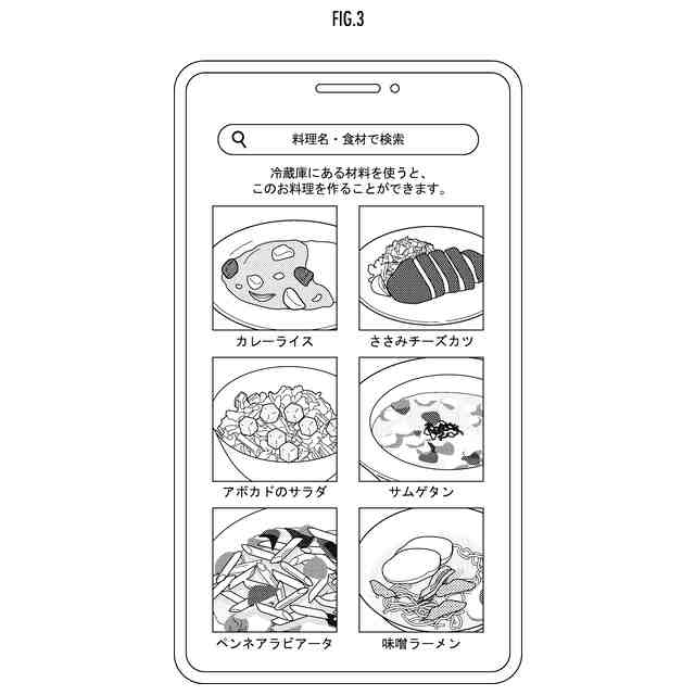候補料理認識部が、その時点における前記在庫状況に基づいて、前記食材を使って料理可能な、又は前記食材を利用して容易に料理可能な料理である候補料理を認識するステップと、