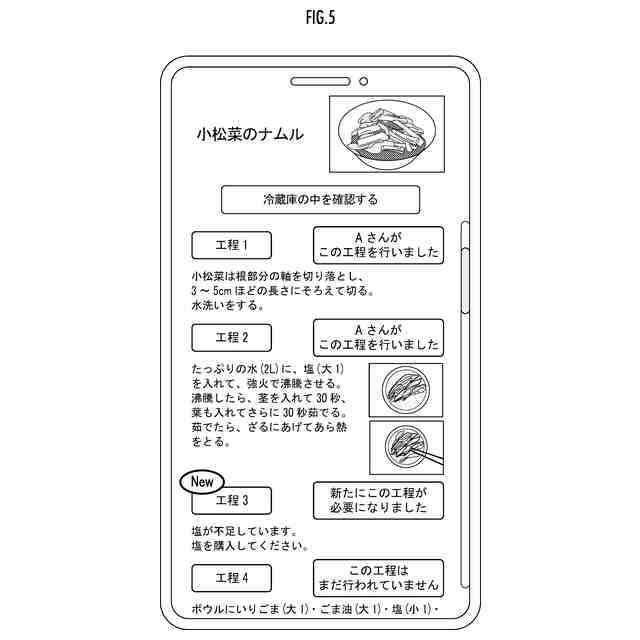 このように、複数の必要工程のうちのいずれかが一方のユーザによって実施された場合に、その工程を実施済工程として他方のユーザに提示すると、1つの料理について複数のユーザが分担して作業を実施する場合であっても、実施済工程(すなわち、その時点における作業全体の進捗状況)を、複数のユーザのいずれもが容易に把握することができる。