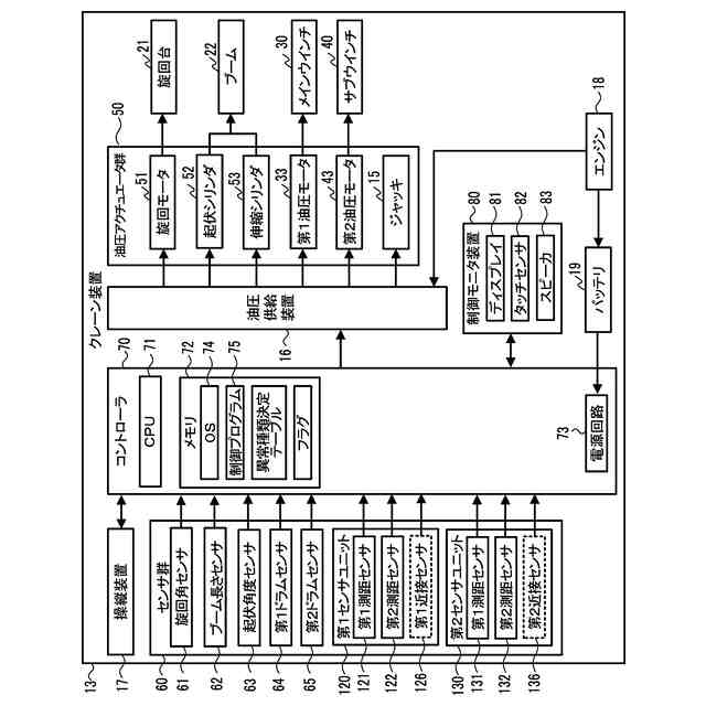 【解決手段】メインウインチの第1ドラム31の周面に対向してガイドレールが設けられている。ガイドレールは、第1センサユニット120を、第1ドラム31の軸線方向に沿ってスライド可能に支持している。第1センサユニット120は、レーザ測距センサである第1測距センサ121及び第2測距センサ122を備える。第1測距センサ121及び第2測距センサ122は、第1ドラム31に巻き付けられたメインワイヤ35が形成する段差86の両側において、メインワイヤ35までの距離をそれぞれ検出する。第1測距センサ121が検出した第1検出距離及び第2測距センサ122が検出した第2検出距離に基づいて、メインワイヤ35が第1ドラム31に正常に巻き付いているか否かが判断される。