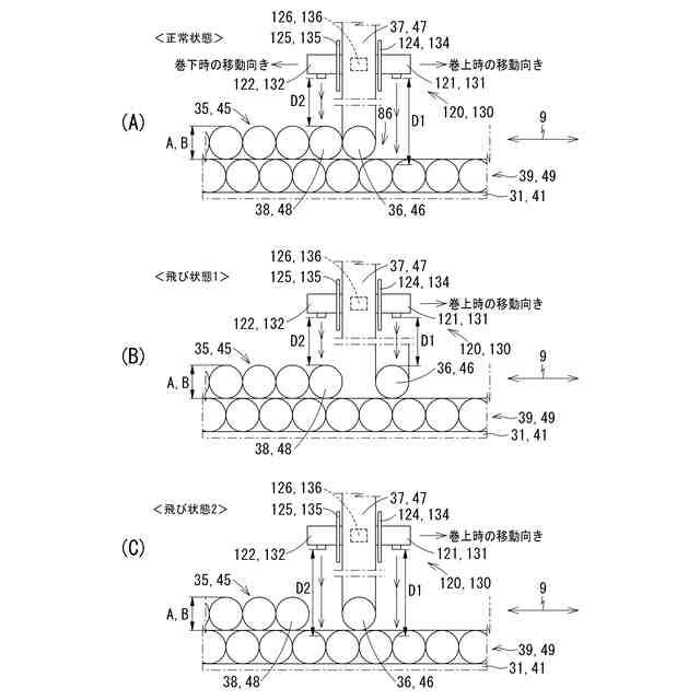 特許文献1に開示された乱巻き検出装置では、検知レバーは、繰り出し或いは巻き取りされるワイヤロープに常に当接する。したがって、検知レバーの摩耗が激しく、且つリミットスイッチに常に負荷が加わり、検知レバー及びリミットスイッチの検査及び交換等のメンテナンスに手間がかかるという問題がある。