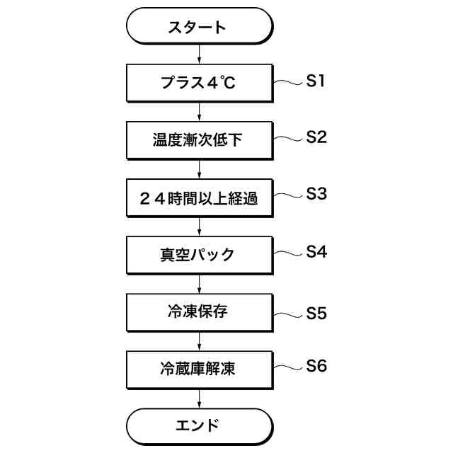 このような工程により、低温で時間をかけてゆっくりと解凍するので、よりドリップが生じ難く、食味および食感を守ることができる。