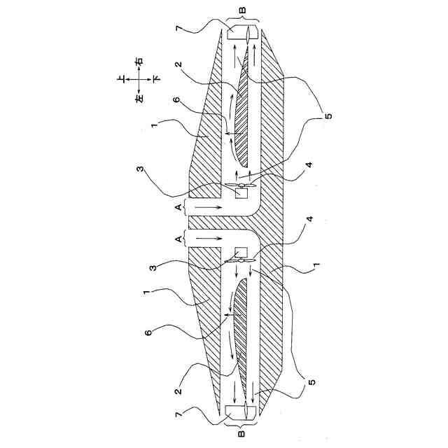 外部プロペラの無いドローン及び飛行体の概略断面図である。