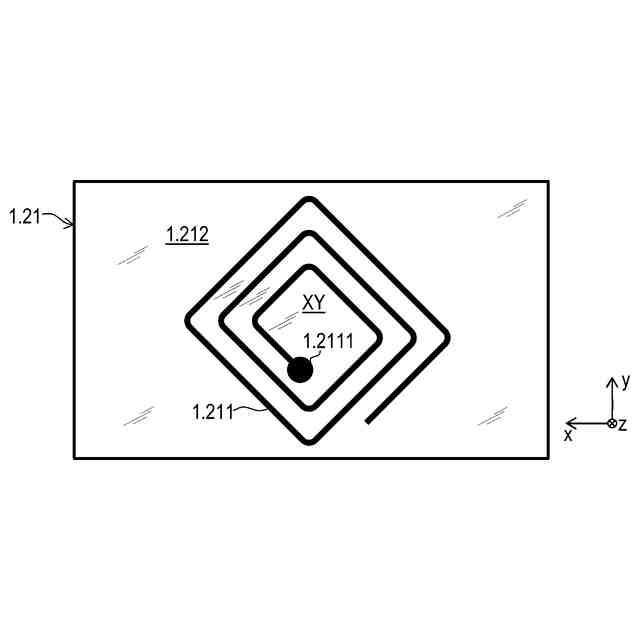 このスケール(2.1,2.2)が、磁石(2.3,2.4)と第二の回路基板(1.2)の間に配置されており、