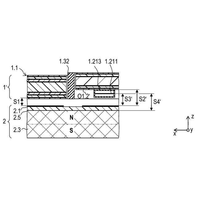 前記のドメインウォール導体(1.211)とスケール(2.1,2.2)の間の第三の間隔が第三の長さ(S3;S3’)を有し、