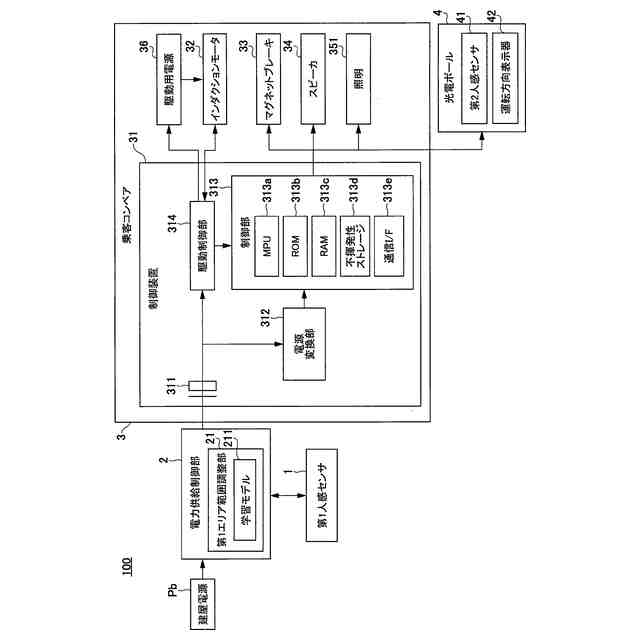 【解決手段】本発明の一側面に係る乗客コンベアシステム100は、乗客コンベア3を視認可能な範囲である第1エリアにおいて人を検知する第1人感センサ1と、第1人感センサ2によって人が検知された場合に、制御装置31、及び、乗客コンベア3の運行に関する情報を報知する報知関連機器34,351,42に電力を供給する電力供給制御部2と、を備える。