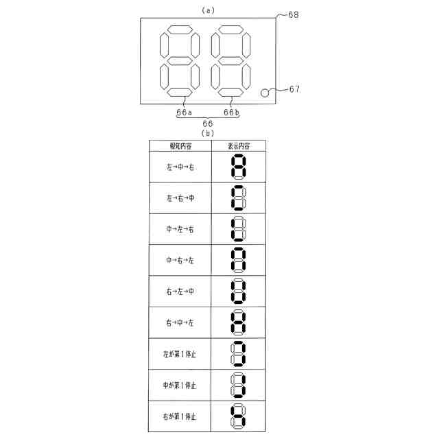 (a)共通表示領域の正面図であり、(b)兼用表示部にて表示される停止順序に対応する情報の内容を説明するための説明図である。