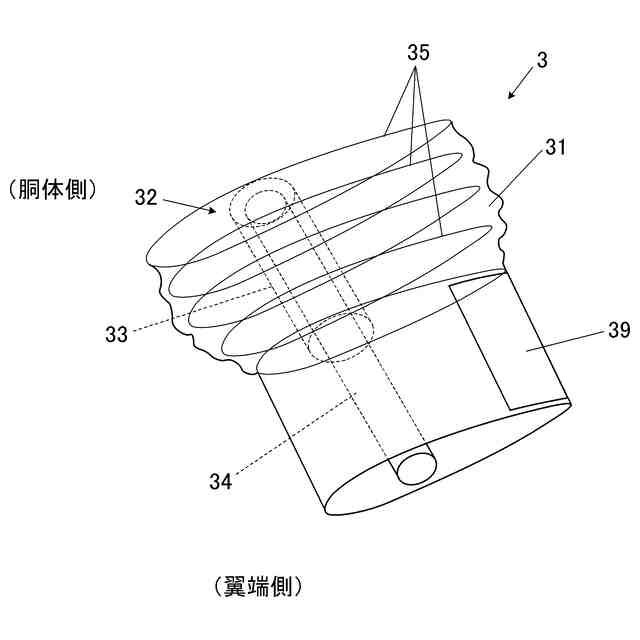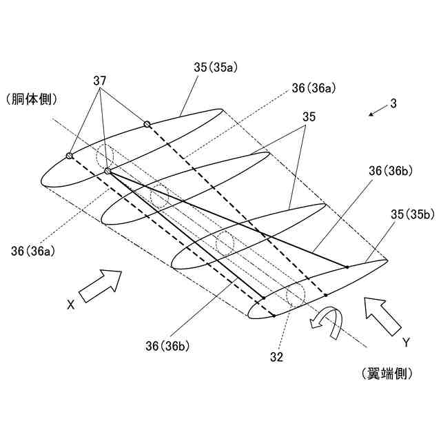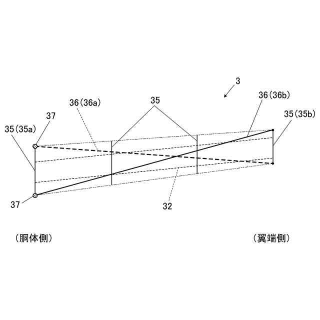 図2は、主翼3の構造を説明するための図である。なお、図2では、舵面39を備える主翼3を例示したが、主翼3は舵面39を備えていなくともよい。