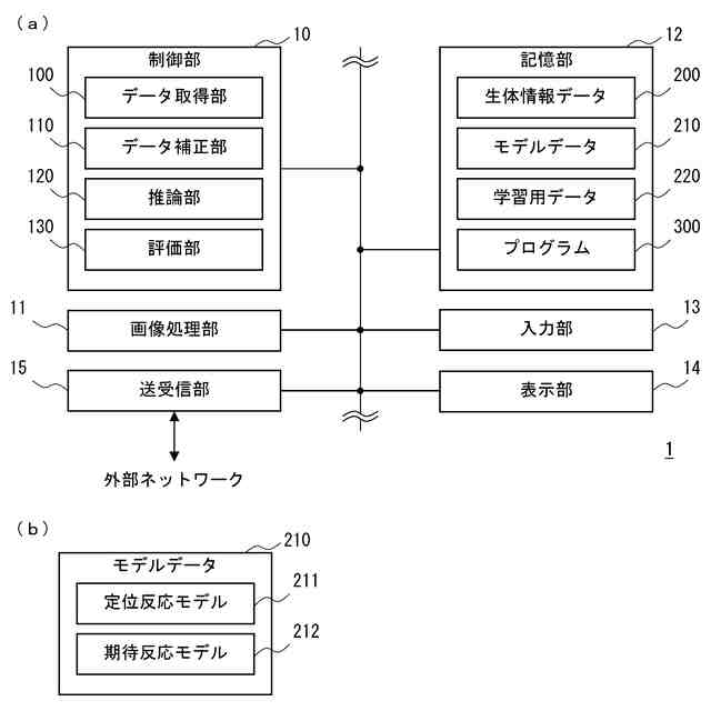 前記データ補正部により前記データ補正された前記生体情報データを、定位反応モデル及び期待反応モデルに入力して、定位反応又は期待反応と一致するかを識別する推論部と、