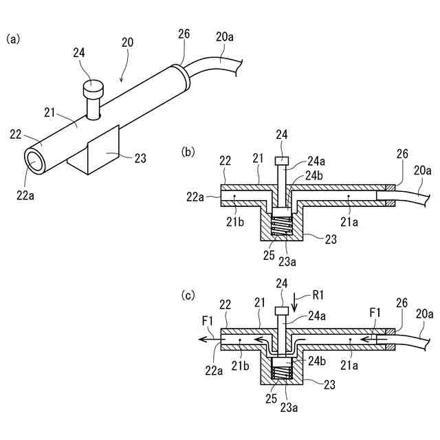 図5に示す掃除器具に対してエアガンから高圧エアーを供給して吸引作用を発生させている状態を示す断面図である。