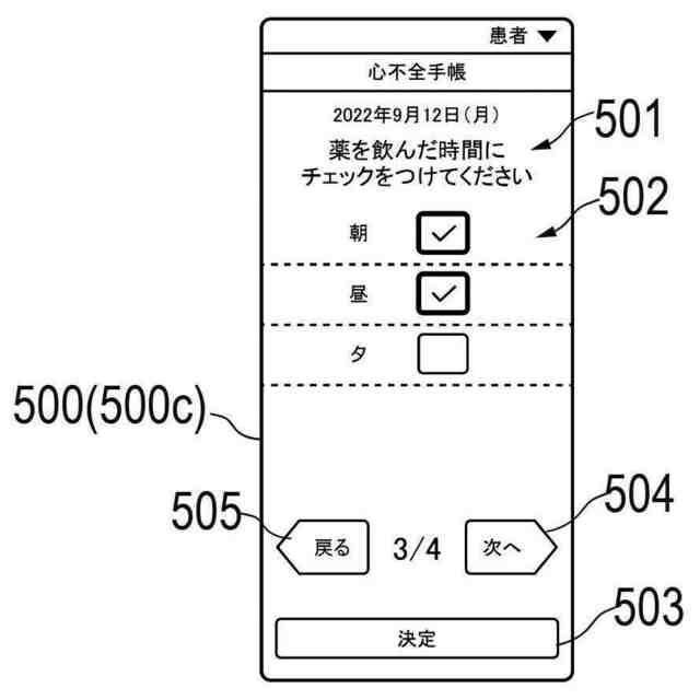 血圧手帳等を用いた自己管理の方法によれば、医療従事者により、毎日血圧手帳等に血圧等の所定の項目の測定結果等を記載させる指導がされることが中心になるため、医療従事者の指導負担は比較的小さい。しかし、この方法では、患者は血圧手帳等を常に持ち歩くわけではないため記載タイミングが限られることや、血圧手帳等に記載することによる効果が判りにくいことから自己管理の達成度は高くない。また、血圧手帳等の紛失により、自己管理の度合いが確認できなくなると、患者に応じた病状改善に向けた指導が困難となり、医療従事者の負担が増加する。