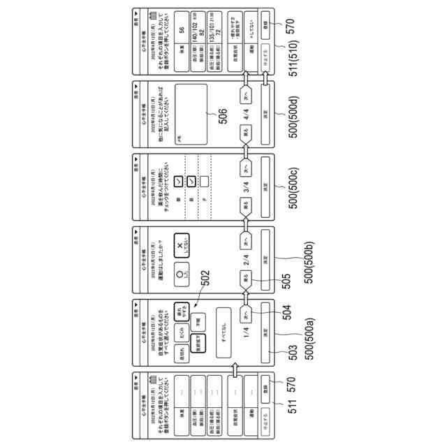 前記単位画面には、前記複数の選択肢に替えて、バイタル項目の測定値の入力を前記バイタル項目の前記質問に対する前記回答として受け付ける測定値入力部と、を含む前記単位画面が含まれ、