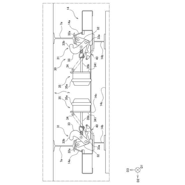 そこで、課題は、積載されたコンテナを固定するためのロック部を所望の位置に保持することができる被牽引車両を提供することである。