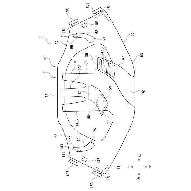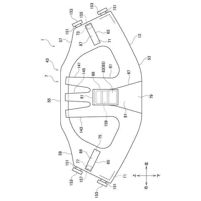 一方の端部である基端部が、前記前右側中間部位の後面の第3の所定の部位に接合されており、他方の端部である先端部が、前記前右側中間部位の後面の第4の所定の部位に接合される右側延出片と、