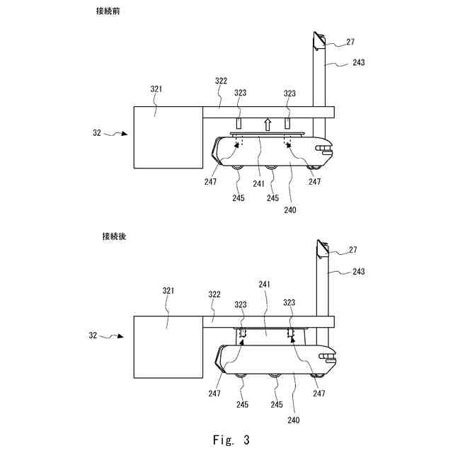 図1の清掃ユニットの接続前後の構成を模式的に示す側面図である。
