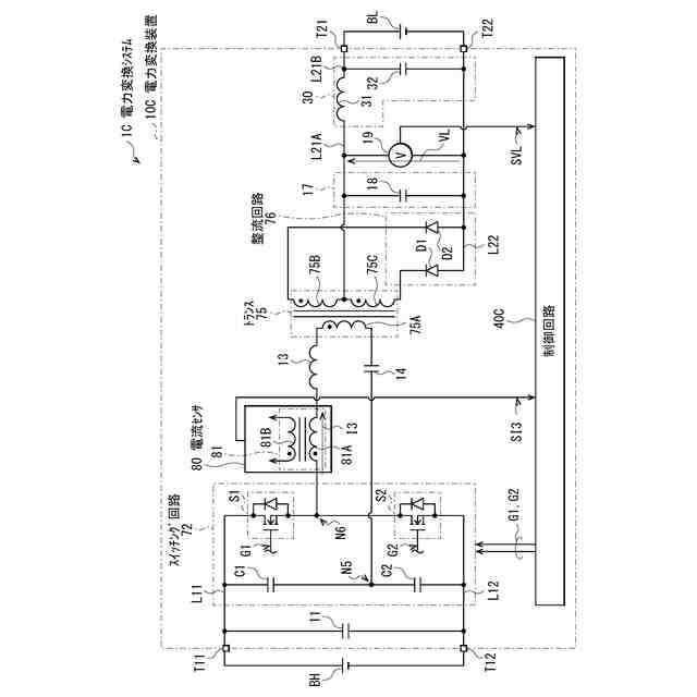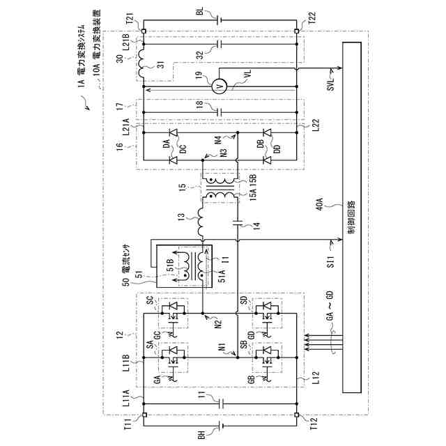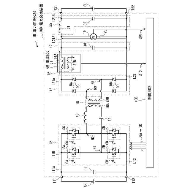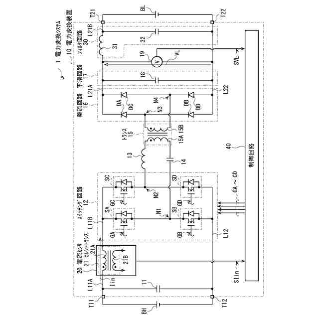 図1は、本発明の一実施の形態に係る電力変換装置を備えた電力変換システム1の一構成例を表すものである。電力変換システム1は、高圧バッテリBHと、電力変換装置10と、低圧バッテリBLとを備えている。高圧バッテリBHの電圧は、例えば400Vであり、低圧バッテリBLの電圧は、例えば12Vである。この電力変換システム1は、高圧バッテリBHから供給された電力を変換し、変換された電力を低圧バッテリBLに供給するように構成される。