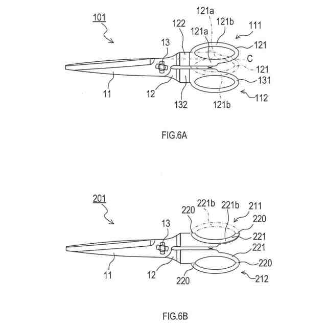 しかしながら、環状又は略環状の把持部を有する鋏は、把持部が外方に広がって設けられていることで、鋏全体の幅が大きくなってしまうため持ち運びにくく、また収納しにくいという問題があった。