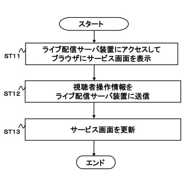 視聴者端末装置で動作するウェブブラウザが、ライブ配信サーバから受信したファイルに基づいてライバーが映し出されたサービス画面を前記視聴者端末装置に表示し、