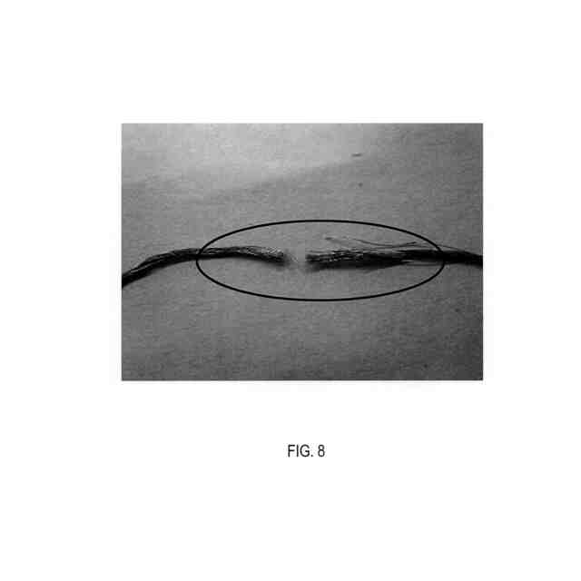 しごき回数が10万回に達したとき、実施例のケーブルにおけるドレンワイヤを撮影した写真である。