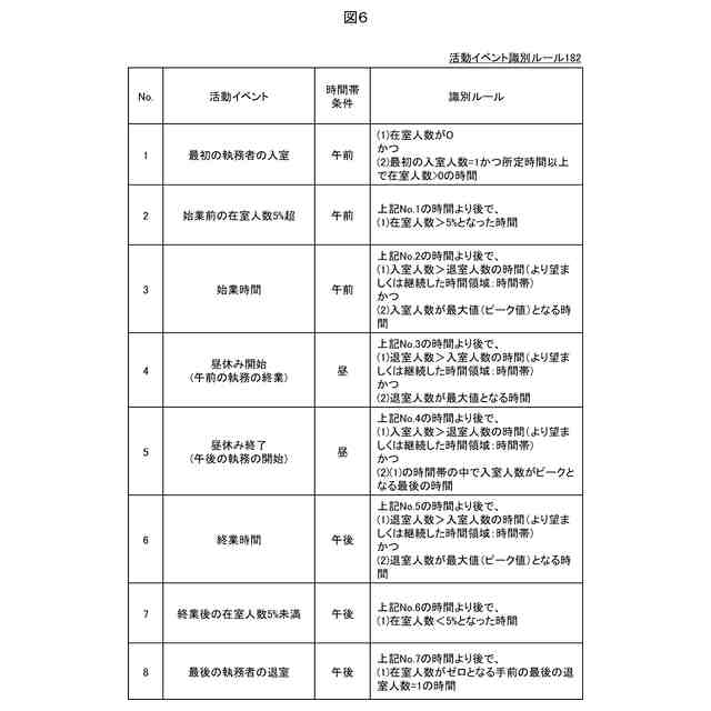 前記活動イベント識別ルールは、前記グループ時間帯を示す時間帯条件ごとの人数データの大小比較結果が示す特徴を示す識別ルールを有し、