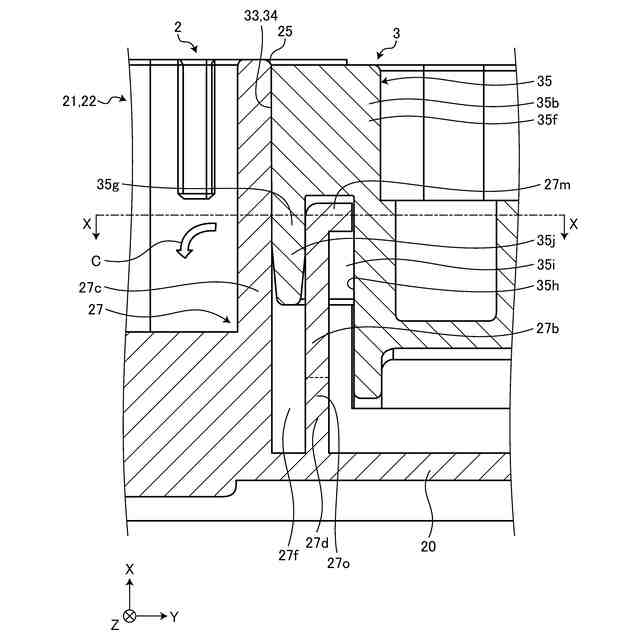 前記リブを有する前記保持部は、前記第3の方向において前記スナップフィットの両側に前記溝部を介して設けられ、