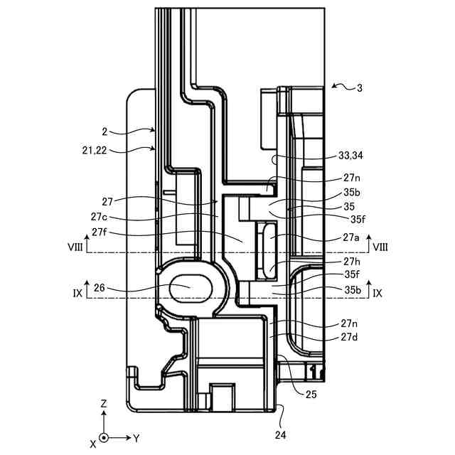 前記スナップフィットおよび前記保持部と前記外壁との間には、前記第1の方向において前記底壁と反対側に開口するとともに前記溝部に連通する空間が設けられ、