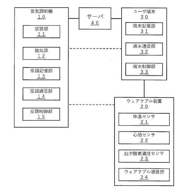前記空調制御部は、前記空調通信部を介して、前記ウェアラブル装置との直接的な通信によって、または、前記ウェアラブル装置と接続したユーザ端末を介して前記ウェアラブル装置と間接的な通信によって、前記ウェアラブル装置を検出する、