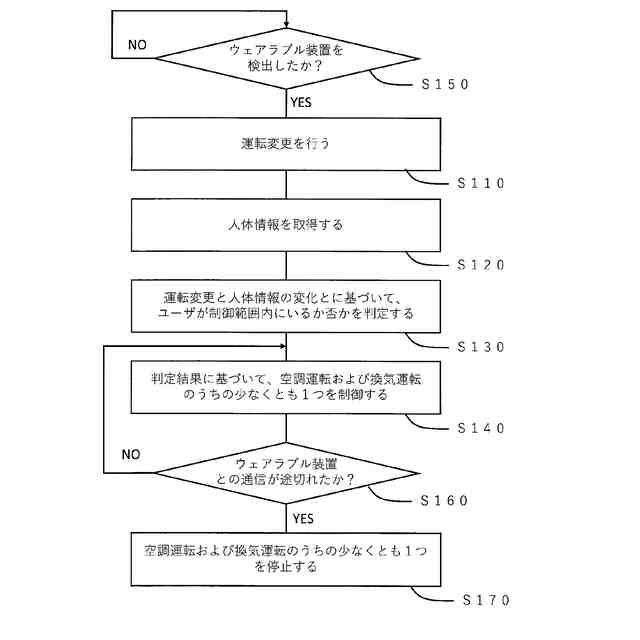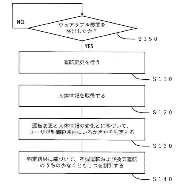 前記空調通信部を介して前記ウェアラブル装置を検出することに応じて、前記空調部または前記換気部に対して運転変更を行い、