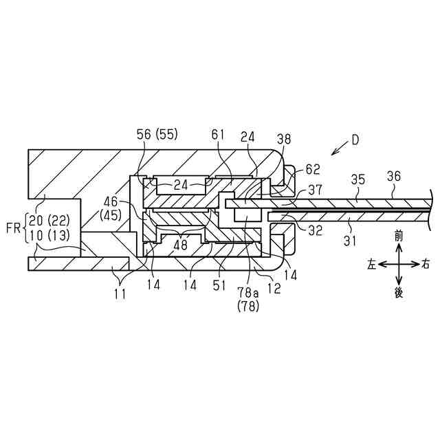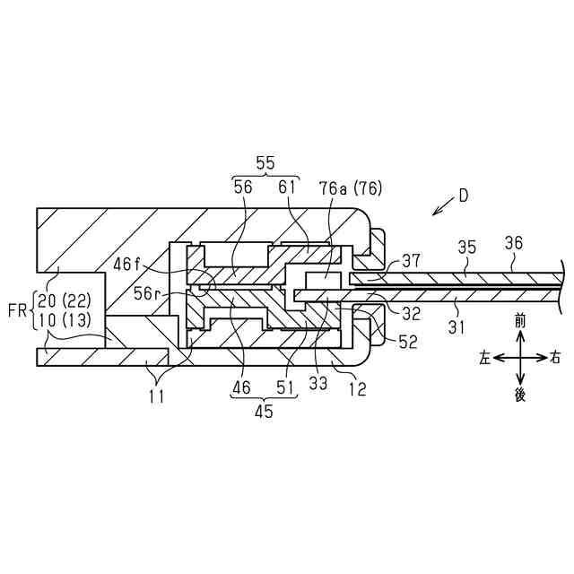 前記第1ガイド部材では、前記締結本体部が前記ガイド本体部の前面よりも後方に位置し、かつ前記第2ガイド部材では、前記締結本体部が前記ガイド本体部の後面よりも前方に位置し、