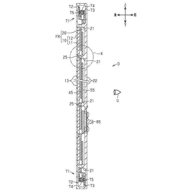 従って、偏光シートのガイド部材に対する締結構造によっては、このような変形が偏光シート全体として積算、増幅等された結果、たるみや波打ちといったシート全体の大きな変形を発生させるおそれがある。例えば、偏光シートの特定辺部が長さ方向における全長にわたってガイド部材に締結されている場合には、変形の逃げ場がないため、上記の現象が起きやすくなる懸念がある。