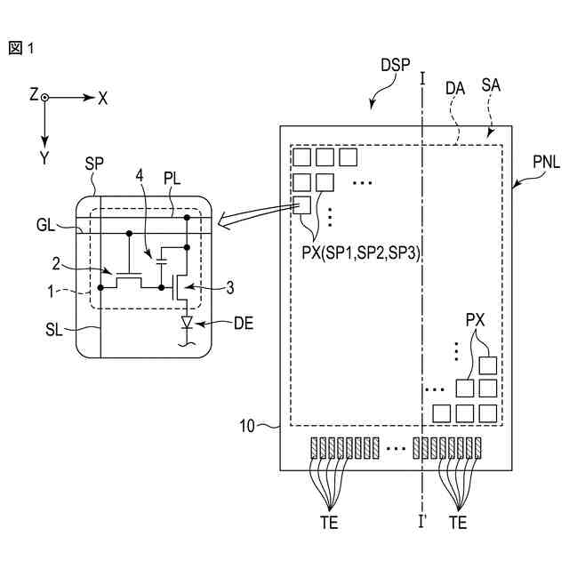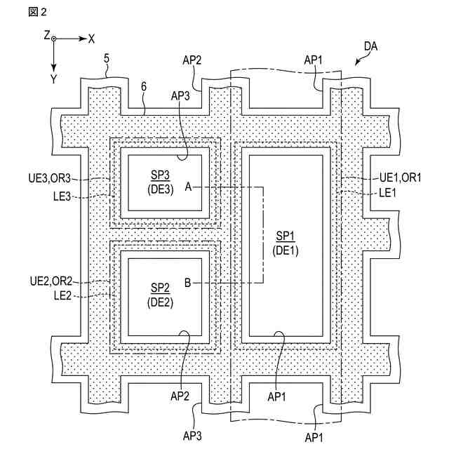 図2は、副画素SP1、SP2、SP3のレイアウトの一例を示す図である。