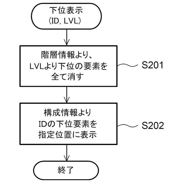 第1階層の表示要素である第1表示要素を画面に表示する第1表示工程と、