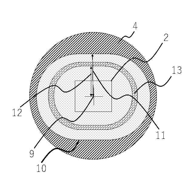 弾性体(3)は図4のように、有底筒状ケースの中心から内壁との距離(11)に対して、有底筒状ケースの中心からの距離(12)が50%から90%の距離となる領域(13)上に配置される。