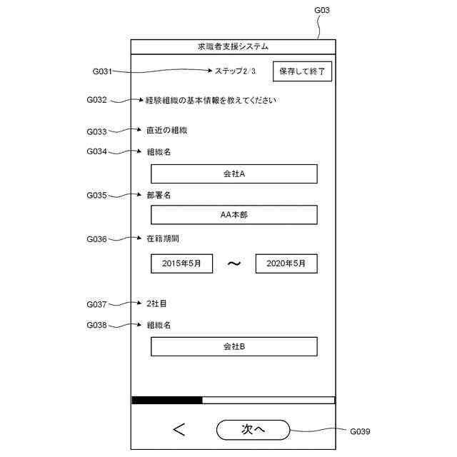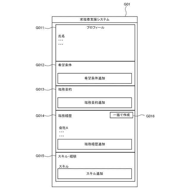 前記受付ステップでは、前記求職者による前記入力を受け付ける入力画面を表示させ、前記入力画面では、前記求職者が所属した組織数を受け付けた後で、前記組織数に対応する数の組織に関する情報の入力欄を表示させ、前記入力欄を介して、前記組織に関する情報の入力を受け付ける、システム。