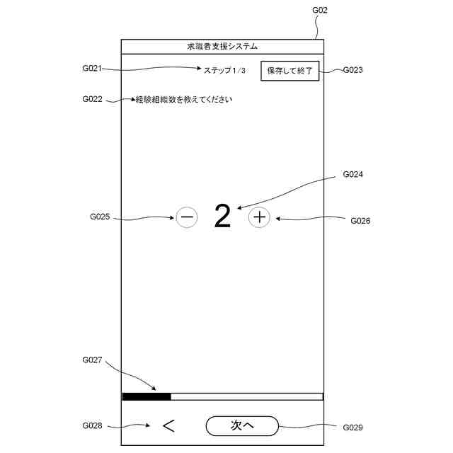 求職支援システム1において表示される組織数受付画面G02の一例を示す図である。