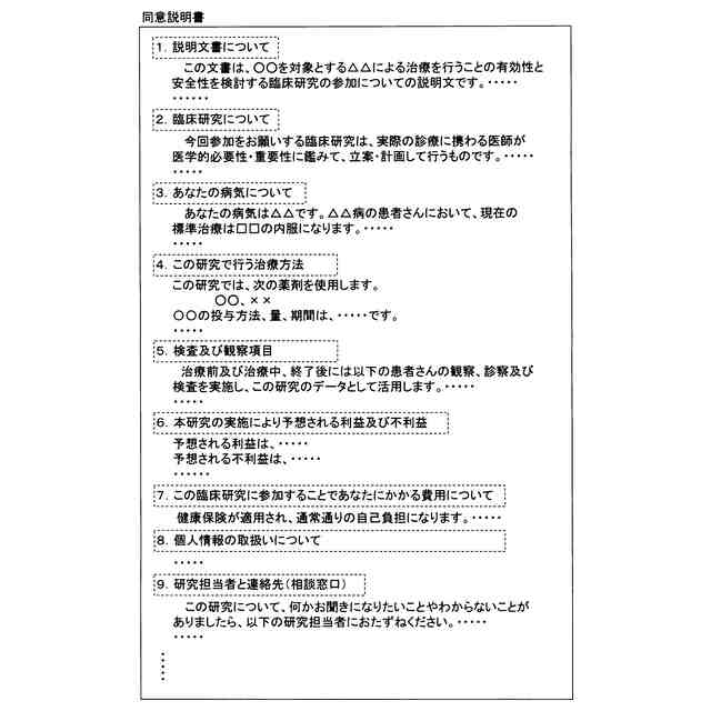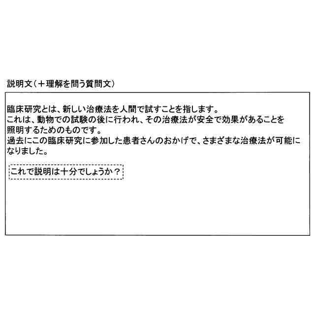 しかし、同意内容の修正や追加が容易にできたとしても、同意取得を実施する現場においては、同意取得が頻回となる場合や、同意説明文書が長文であるための被験者に対する説明項目が多くなり、また被験者にとって説明内容が難解である場合には、同意説明文書の説明に要する医療従事者の労力は多大となる。