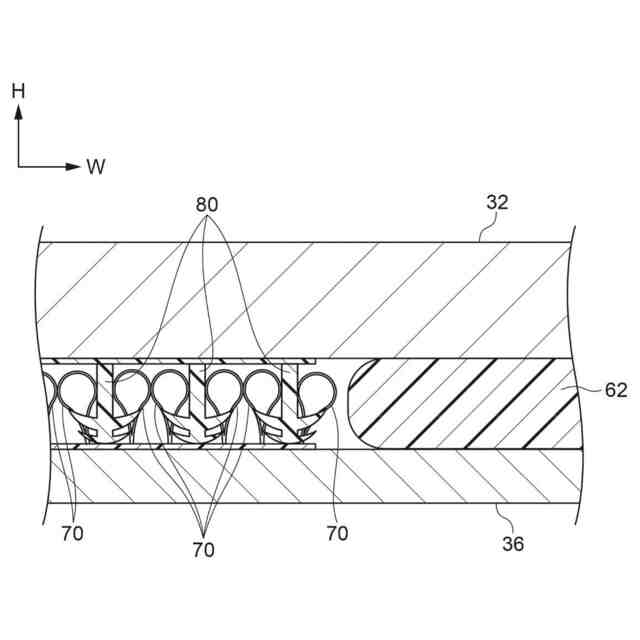 また、面ファスナーは、弾性接着剤の面内方向の動きに追従するため、ステープルで下張り板に上張り板を保持する構成と比較して、上張り板から下張り板への応力の伝達を抑制できる。